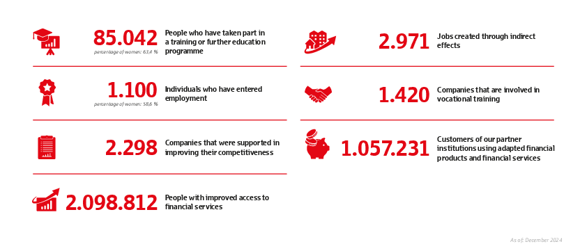 The results confirm this: The German Sparkassenstiftung's work makes a decisive contribution to promoting financial inclusion and economic participation – especially for small and medium-sized enterprises and disadvantaged population groups.