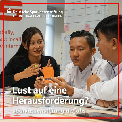 Über 2.000 Mitarbeitende von Sparkassen waren seit der Gründung der Deutsche Sparkassenstiftung durch verschiedenste Einsatzmöglichkeiten in über 100 Ländern im Einsatz und mehr als 340 Beschäftigte engagieren sich heute in den weltweiten Projekten für finanzielle Inklusion. Folgende Stellenprofile haben wir: