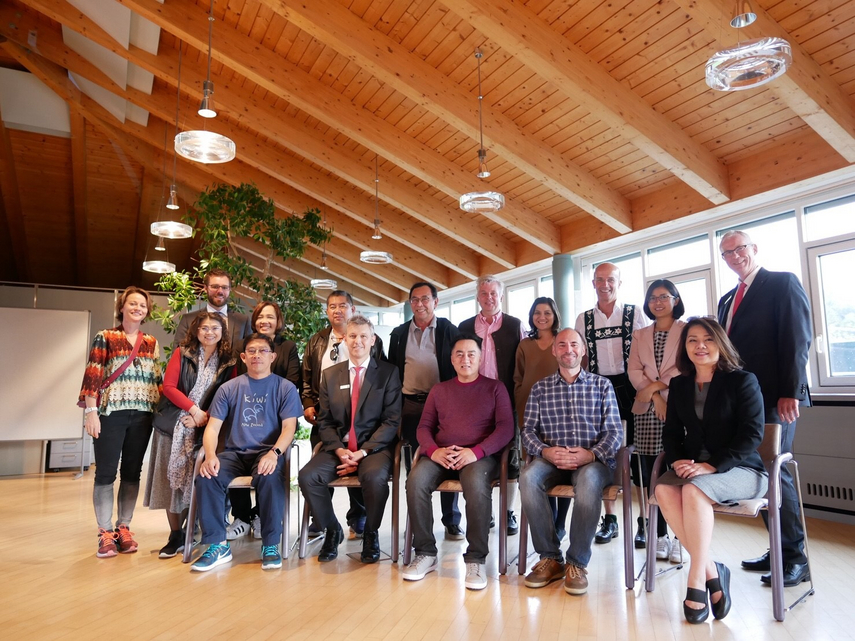 Seit 2017 engagieren sich die Sparkassenstiftung und die Sparkasse Allgäu mit einem gemeinsamen Projekt zur Stärkung der finanziellen Grundbildung in Thailand. Die insgesamt 17 Gesandten, darunter der dritte GSB-Vorstand Khun Isara, hörten in der Sparkasse Allgäuverschiedene Vorträge, tauchten aber auch in die Allgäuer Kultur und Natur ein. Sie besuchten den Viehscheid in Wertach und fuhren mit dem Weltcup-Express aufs Ofterschwanger Horn, wo sie ein Mittagessen mit Ausblick auf die Allgäuer Berge genießen konnten. Im Vorfeld zu diesem Besuch waren Martin Wolf (Bereichsleiter Medialer Vertrieb) und Harald Schneider (Abteilungsleiter Personal) in Thailand vor Ort und gaben ihr Wissen an die GSB-Mitarbeiter weiter.