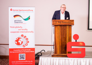 Auch stellte er die Werte der Sparkassen heraus, die das regionales Bankgeschäft fördern und Kleinst, Klein und Mittleren Unternehmen (KKMU) unterstützen. Diese Sparkassenwerte setzt die Deutsche Sparkassenstiftung in ihren Projekten in über 54 Länder ein.